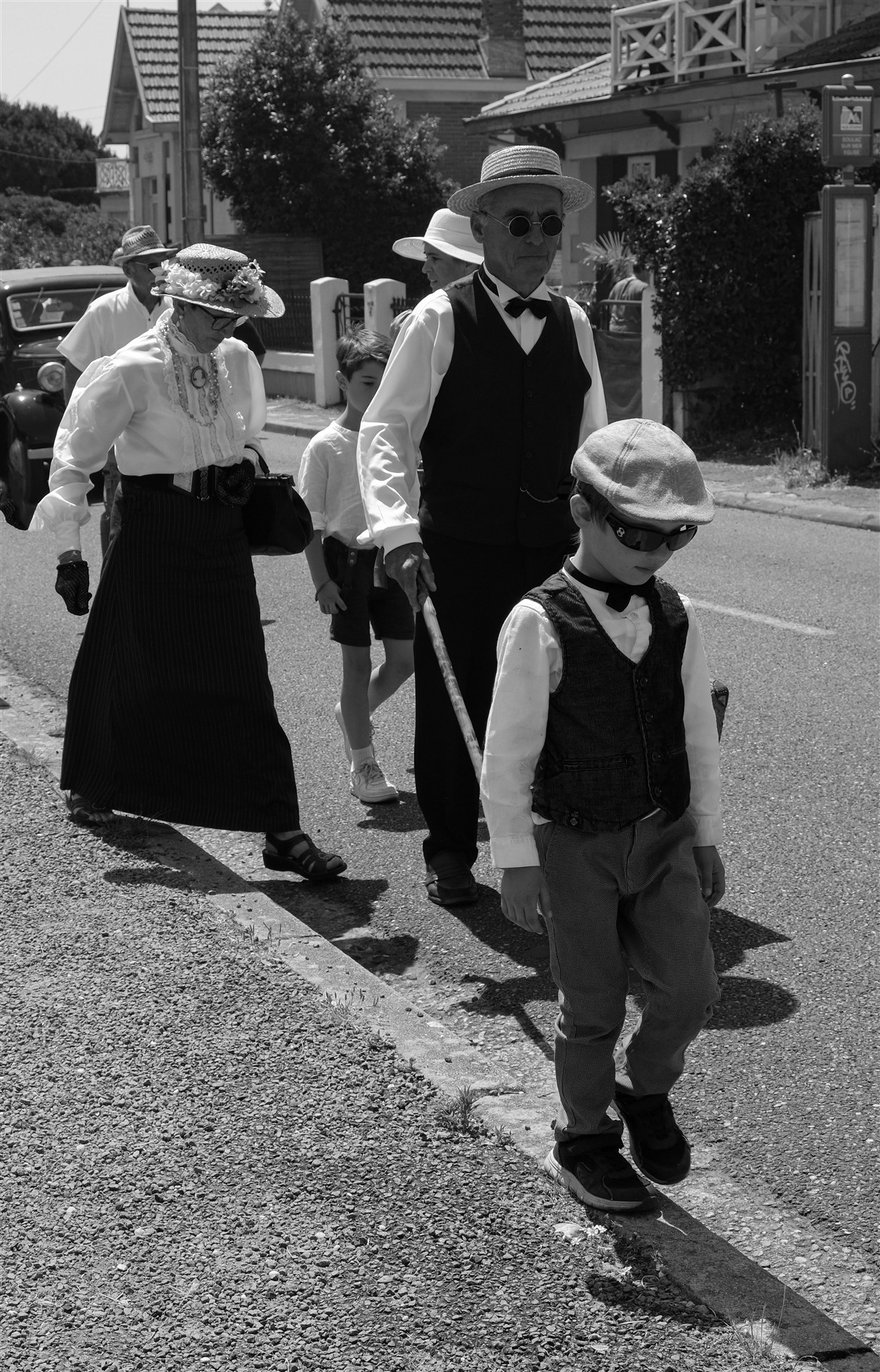 Depuis 2004, la station familiale médocaine de Soulac connait le premier week-end de juin un drôle de phénomène. Les 4×4, les V.T.T., les jeans disparaissent et les rues sont envahies par de vieilles tractions, des dames vêtues de longues robes abritées sous des ombrelles et accompagnées de messieurs couverts d’un canotier ou d’un haut de forme…